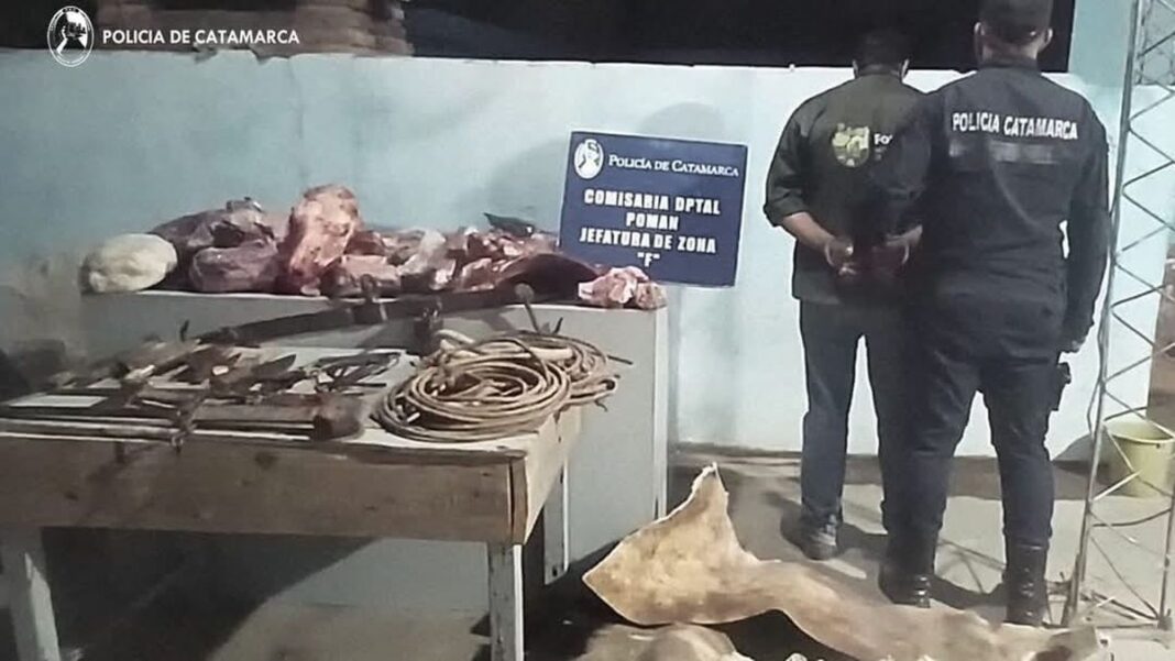 Un procedimiento policial terminó con el secuestro de carne faenada y la detención de un hombre en la localidad de Colana, departamento Pomán. Tras una denuncia penal, efectivos de la División Abigeato, junto con sus pares de la Comisaría de Pomán, peritos de Criminalística y Bromatología Municipal, allanaron un domicilio donde hallaron 90 kilos de carne de animal vacuno en presunto estado irregular.