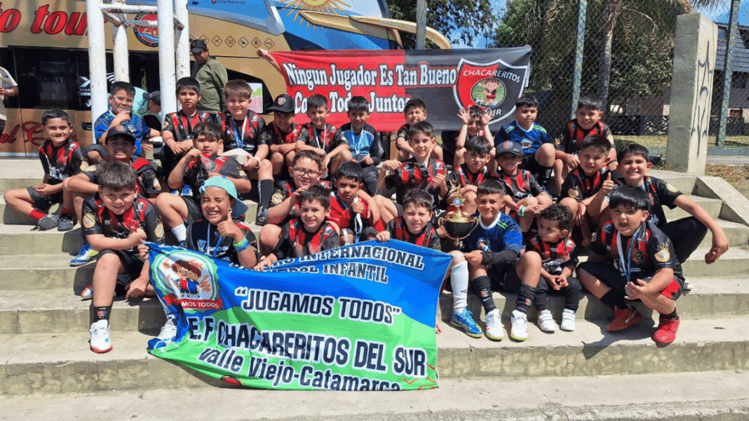 La Escuela de Fútbol Chacareritos del Sur vivió un fin de semana histórico. Durante su participación en la 26° edición del Encuentro Internacional de Fútbol Infantil “Jugamos Todos”, que se desarrolló en Villa Carlos Paz, Córdoba, los jóvenes futbolistas dejaron una huella imborrable, destacándose entre los mejores equipos del certamen y trayendo un trofeo a Catamarca.