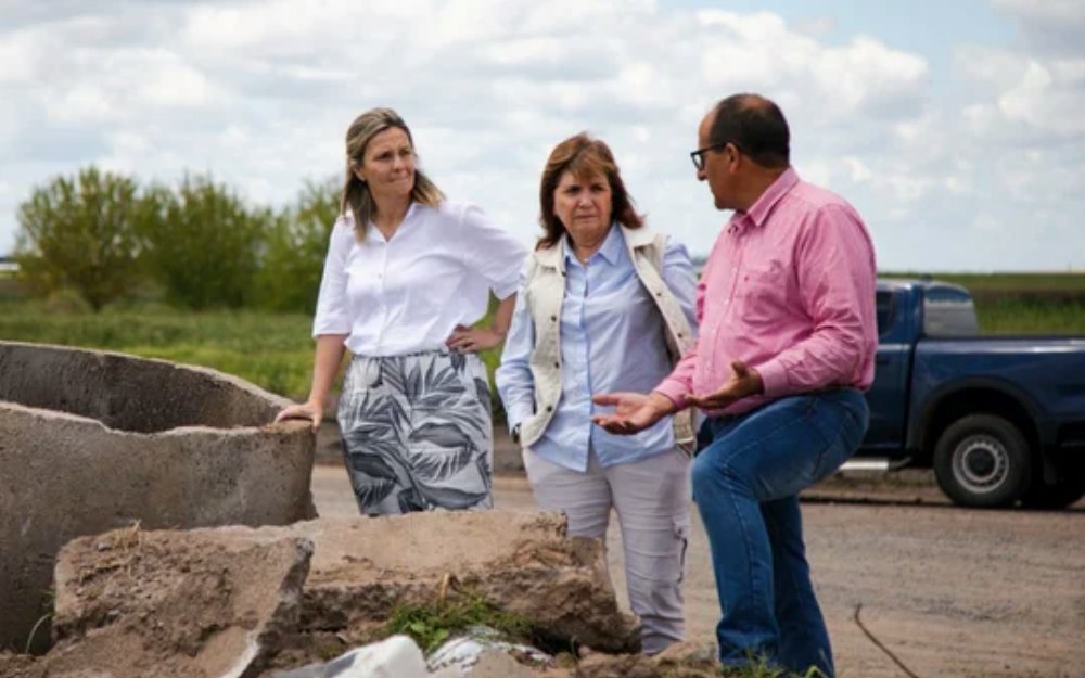 La ministra de Seguridad, Patricia Bullrich, visitó este sábado áreas rurales de la provincia de Buenos Aires afectadas por las inundaciones y supervisó operativos de asistencia junto a autoridades locales, productores y fuerzas federales.