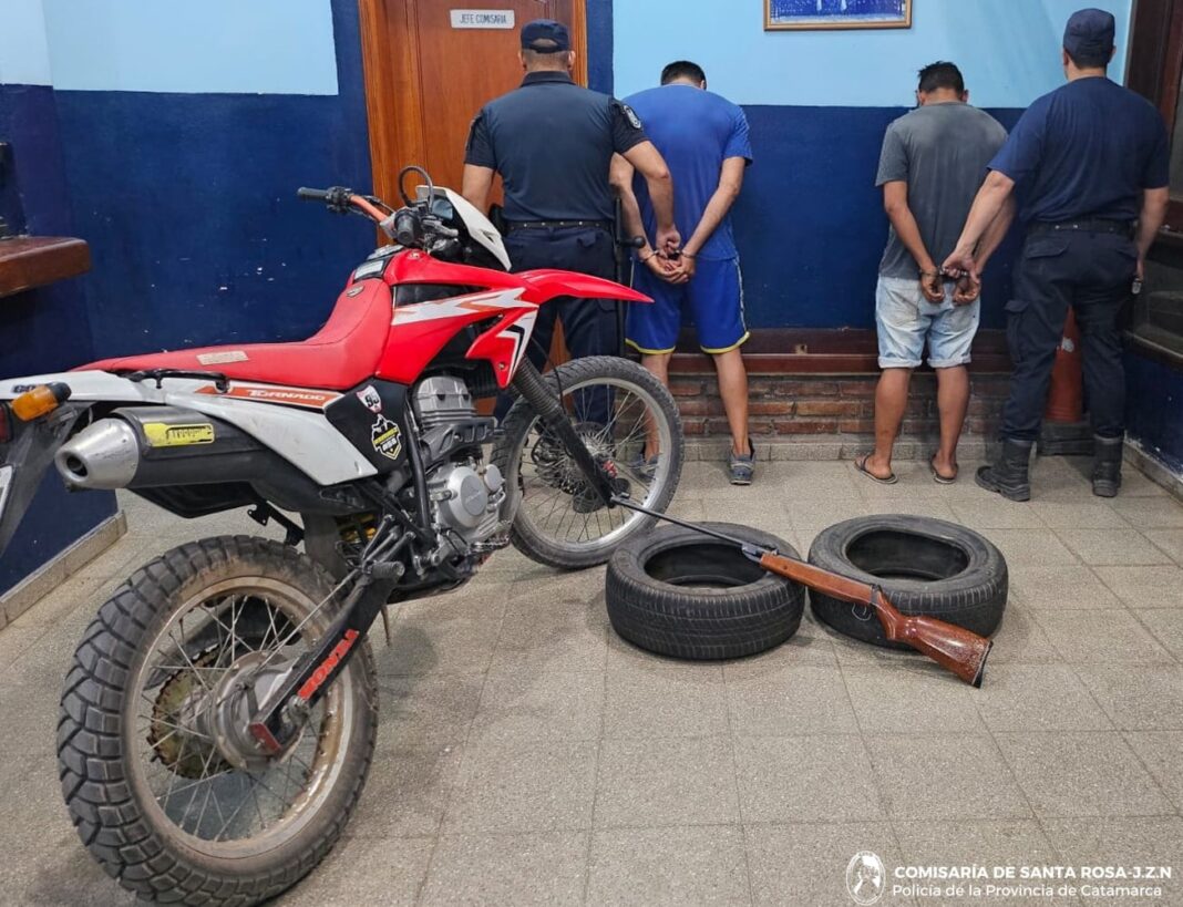 Además, los policías secuestraron una Honda Tornado 250 cc en la que circulaban y dos cubiertas de origen dudoso que llevaban con ellos.