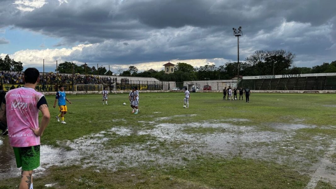 Atlético Policial e Independiente de la 1° de Mayo se enfrentan en un duelo clave por los dieciseisavos de final del Torneo Federal Amateur, en un partido que se ve fuertemente afectado por las condiciones climáticas. A pesar de las fuertes precipitaciones que cayeron durante la tarde y dejaron la cancha con mucha agua, el encuentro se mantiene en juego.