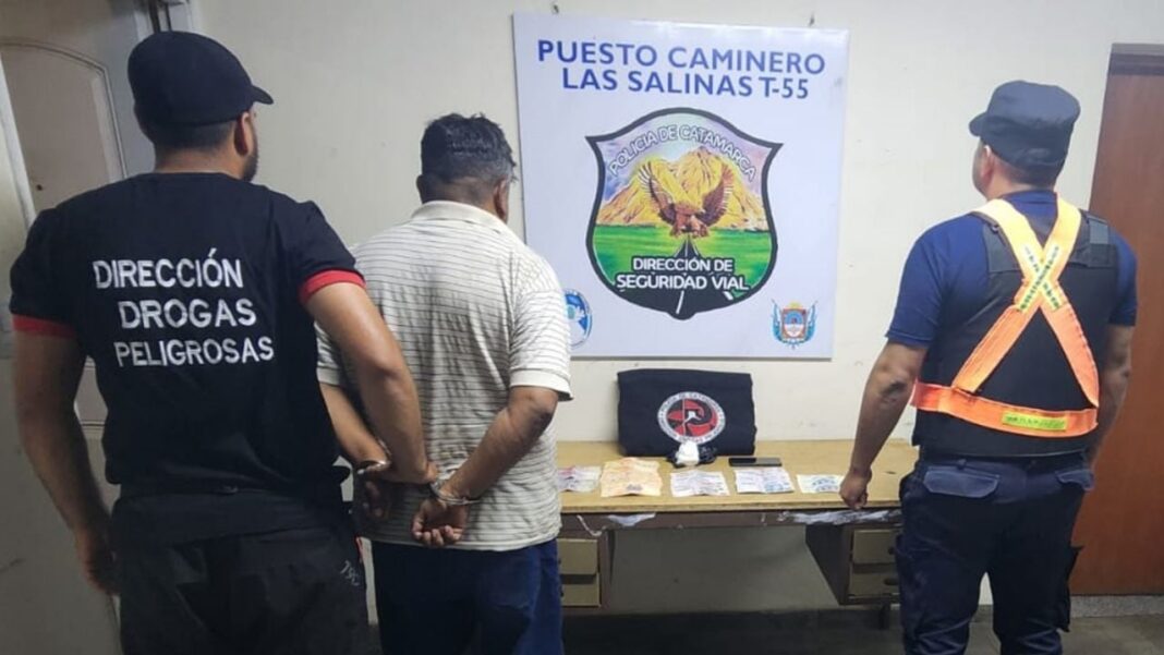 Anoche, a las 23:50, mientras efectivos del Grupo Antinarcóticos de Unidades Regionales (GAUR-Recreo), dependientes de la Dirección Drogas Peligrosas de la Policía de la Provincia, conjuntamente con sus pares de la Dirección de Seguridad Vial, realizaban un control vehicular e identificación de personas en el puesto caminero Las Salinas, ubicado en la Ruta Nacional N° 60, Dpto. La Paz, procedieron a controlar un camión Scania, en el que circulaban dos personas del sexo masculino.