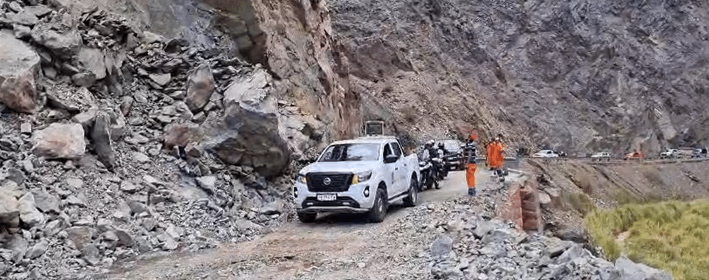 Vialidad Nacional informó que, hace instantes, se consiguió habilitar media calzada de la Ruta Nacional 60 en la Quebrada Las Angosturas, a la altura del kilómetro 1.414, con el objetivo de permitir el paso de los vehículos que habían quedado atrapados entre el sector afectado por el derrumbe y el límite internacional con Chile. La medida busca aliviar la situación de quienes permanecían varados en la zona.