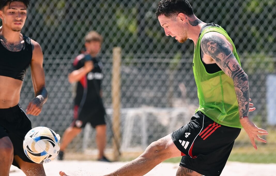 En un trabajo diferente los jugadores intensificaron con un partido de fútbol playa donde Moreno fue parte de unos de los equipos. Es sabido de la manera de trabajar de Gallardo donde en algún momento sacó a todo el plantel a andar en bici.