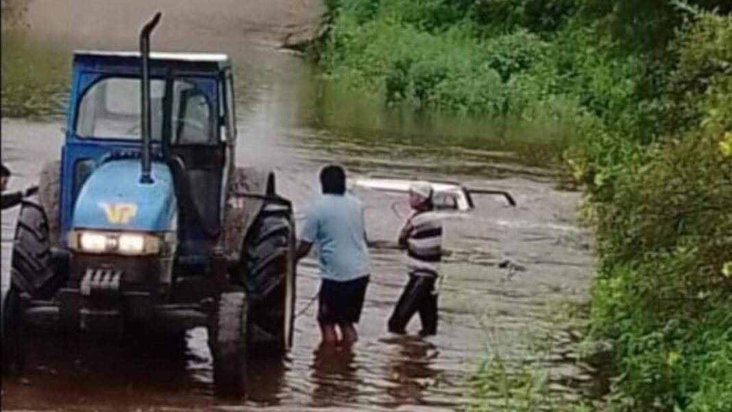 El hecho ocurrió durante la mañana, cuando el conductor del vehículo intentó cruzar el cauce del río y, debido a la creciente, la camioneta quedó detenida y fue arrastrada algunos metros, quedando parcialmente bajo el agua.