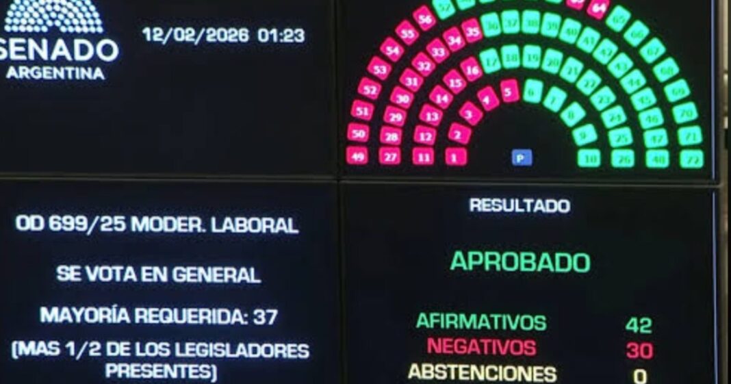 Tras una extensa sesión y luego de negociaciones con gobernadores y sectores sindicales, el Senado aprobó por mayoría el proyecto de reforma laboral impulsado por el Gobierno. La iniciativa ahora deberá ser tratada en la Cámara de Diputados.