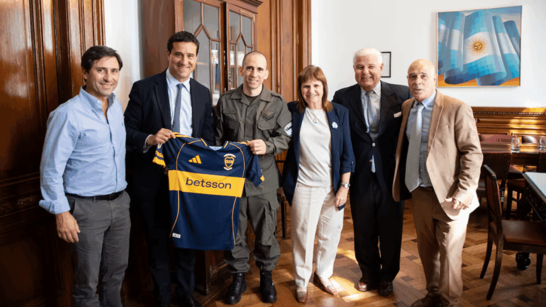 Durante el encuentro, la senadora le obsequió a Gallo su libro Guerra sin cuartel, donde relata su gestión como ministra de Seguridad durante el gobierno de Mauricio Macri. Por su parte, el senador Maximiliano Abad le regaló una camiseta de Boca Juniors.