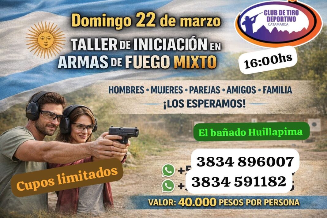 El Club de Tiro Deportivo Catamarca anunció la realización de un taller de iniciación en armas de fuego mixto, destinado a quienes deseen dar sus primeros pasos en esta disciplina.